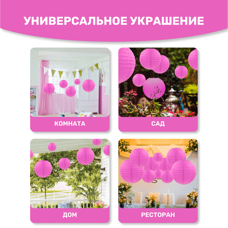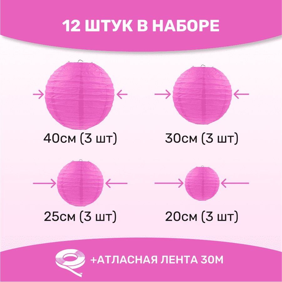 Комплект подвесные фонарики 12 шт малиновый