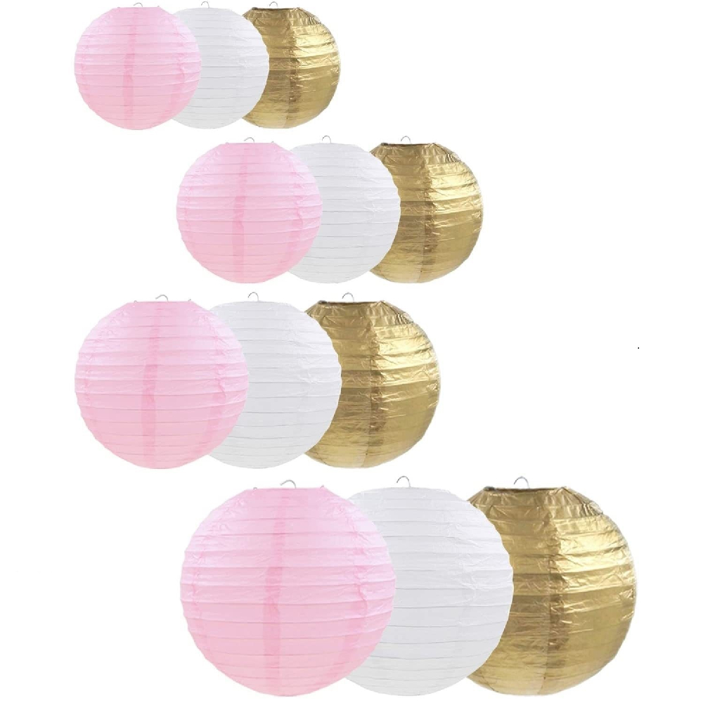Набор подвесные фонарики 12 шт, розовый+белый+золото