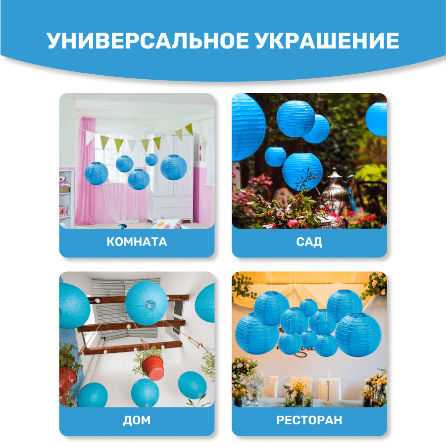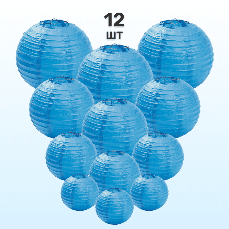 Комплект подвесные фонарики 12 шт синий