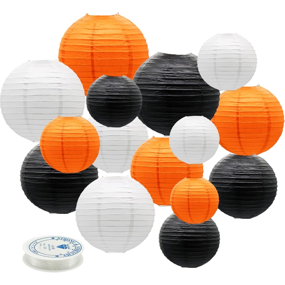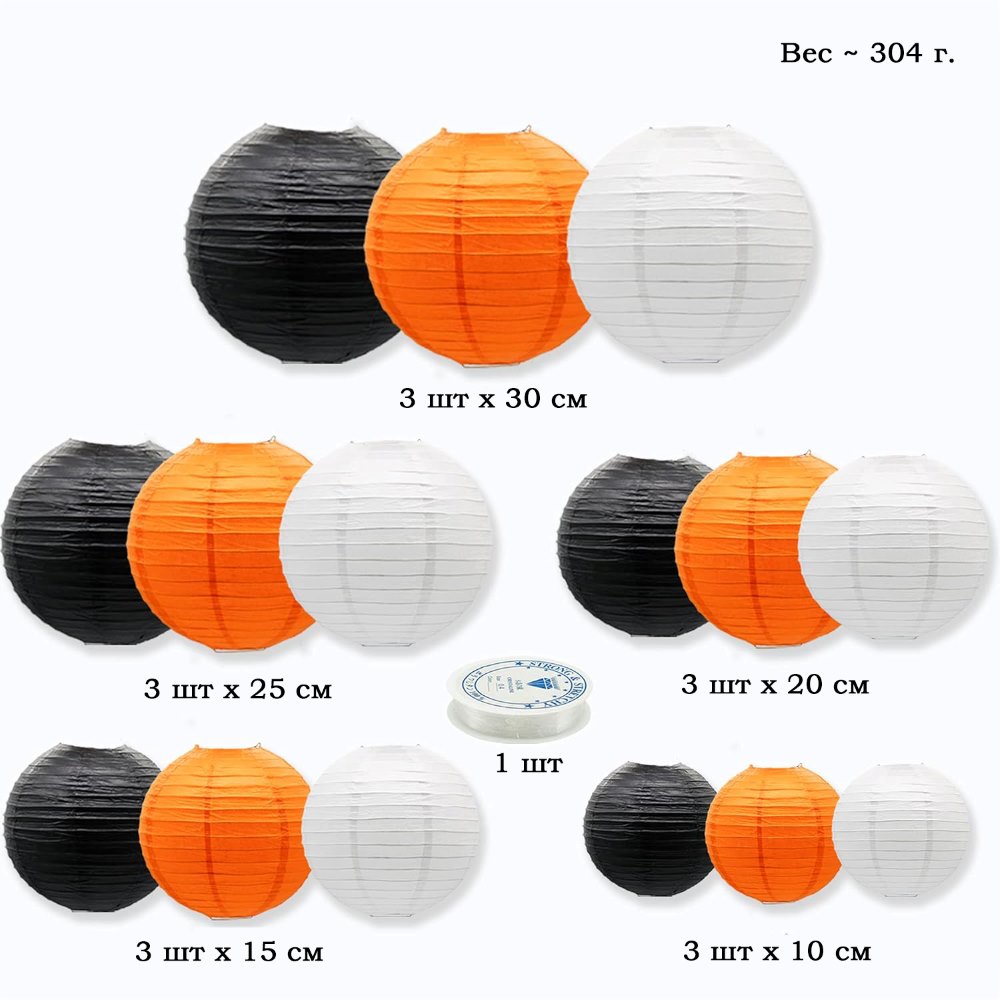 Набор подвесные фонарики 15 шт + леска, белый+оранжевый+черный