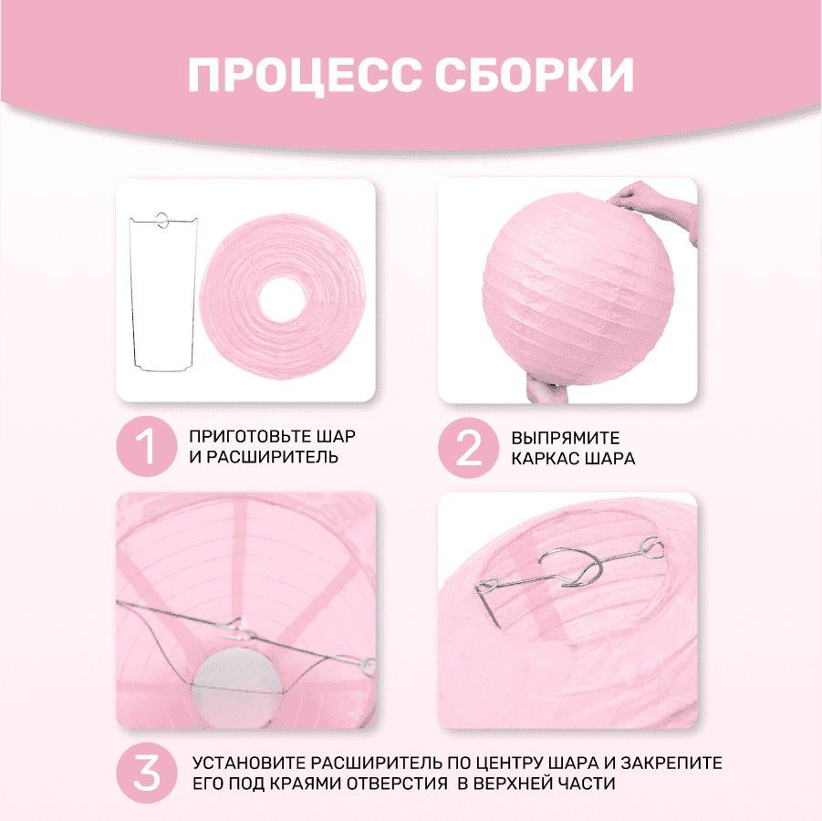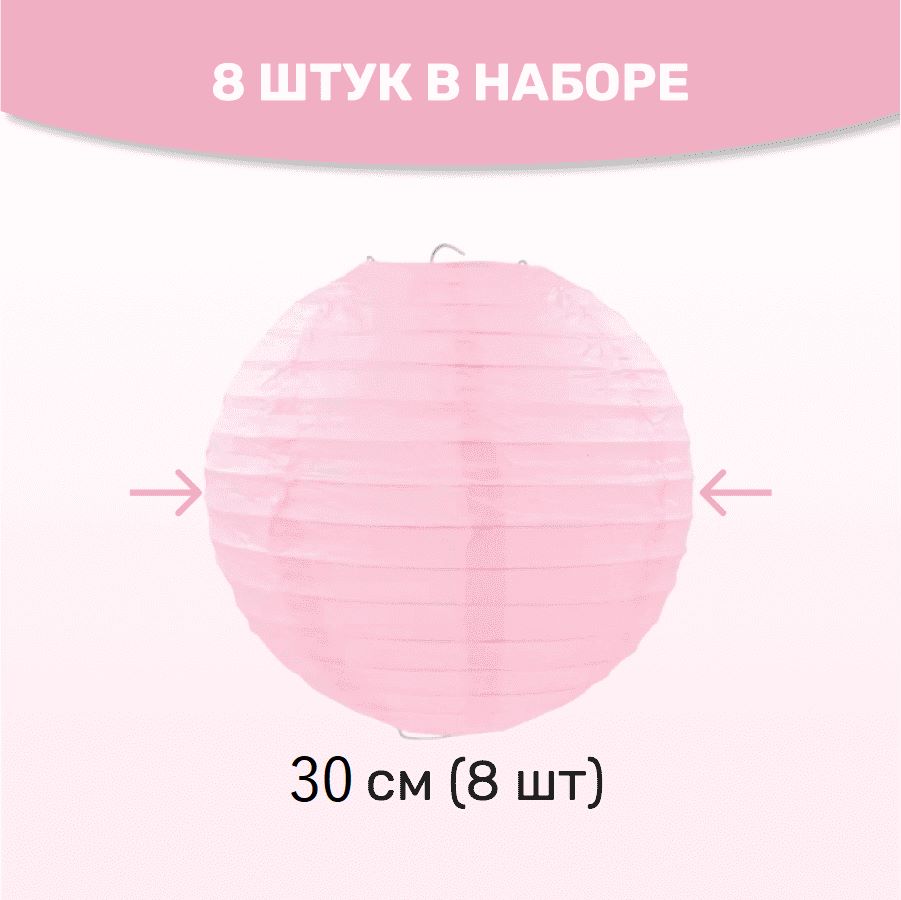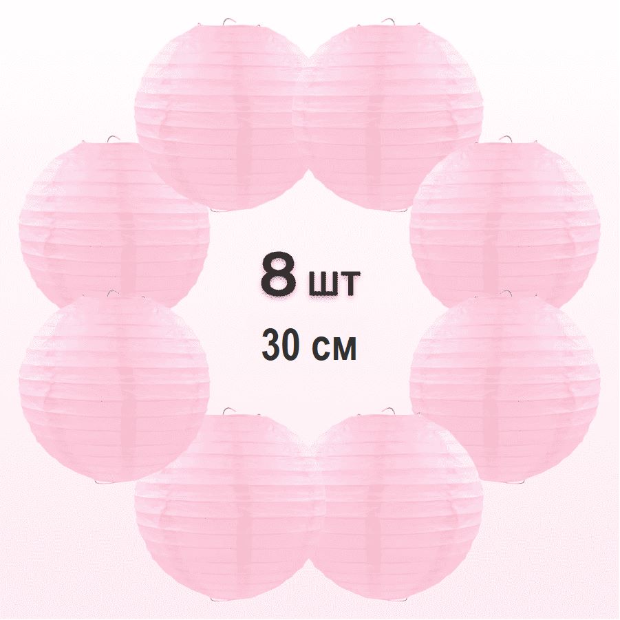 Комплект подвесные фонарики 30 см х 8 шт, розовый