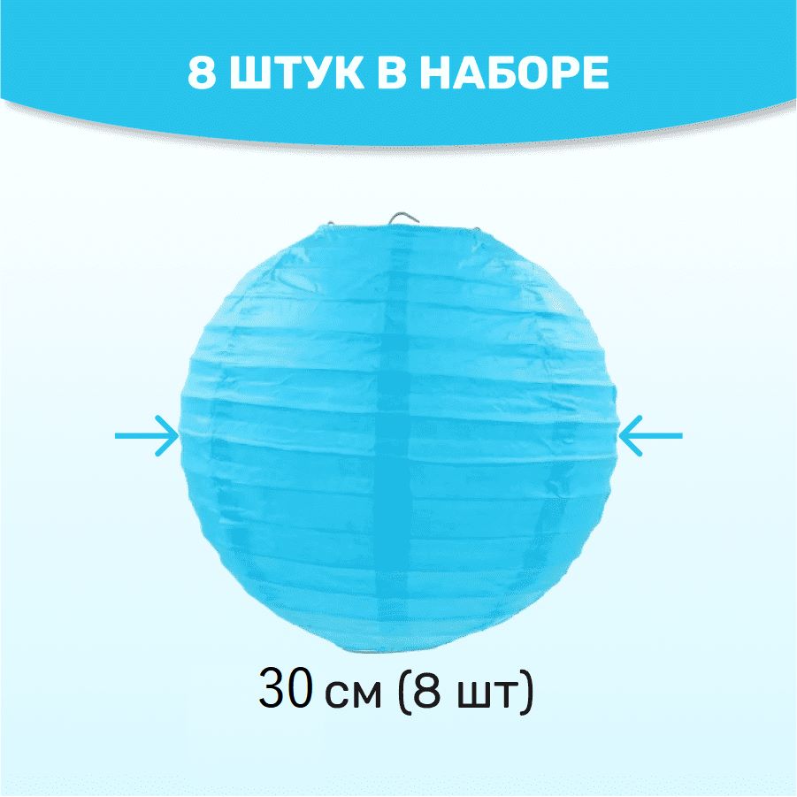 Комплект подвесные фонарики 30 см х 8 шт, светло-синий