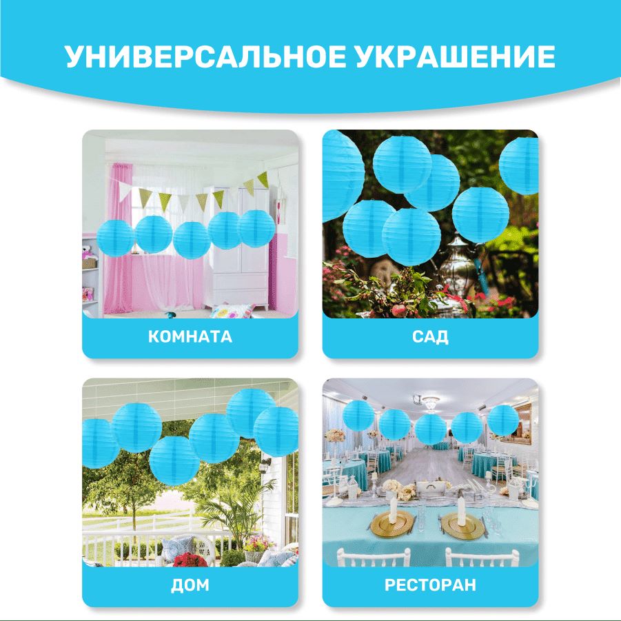 В комплект входит 8 бумажных фонариков и лента атласная.