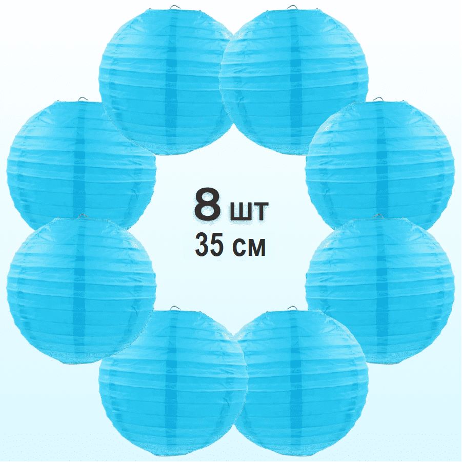 Комплект подвесные фонарики 35 см х 8 шт, светло-синий