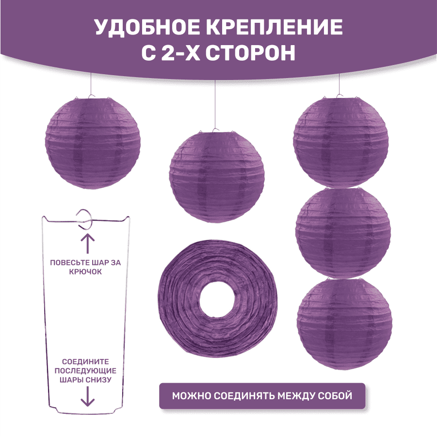 Комплект подвесные фонарики 40 см х 8 шт, фиолетовый