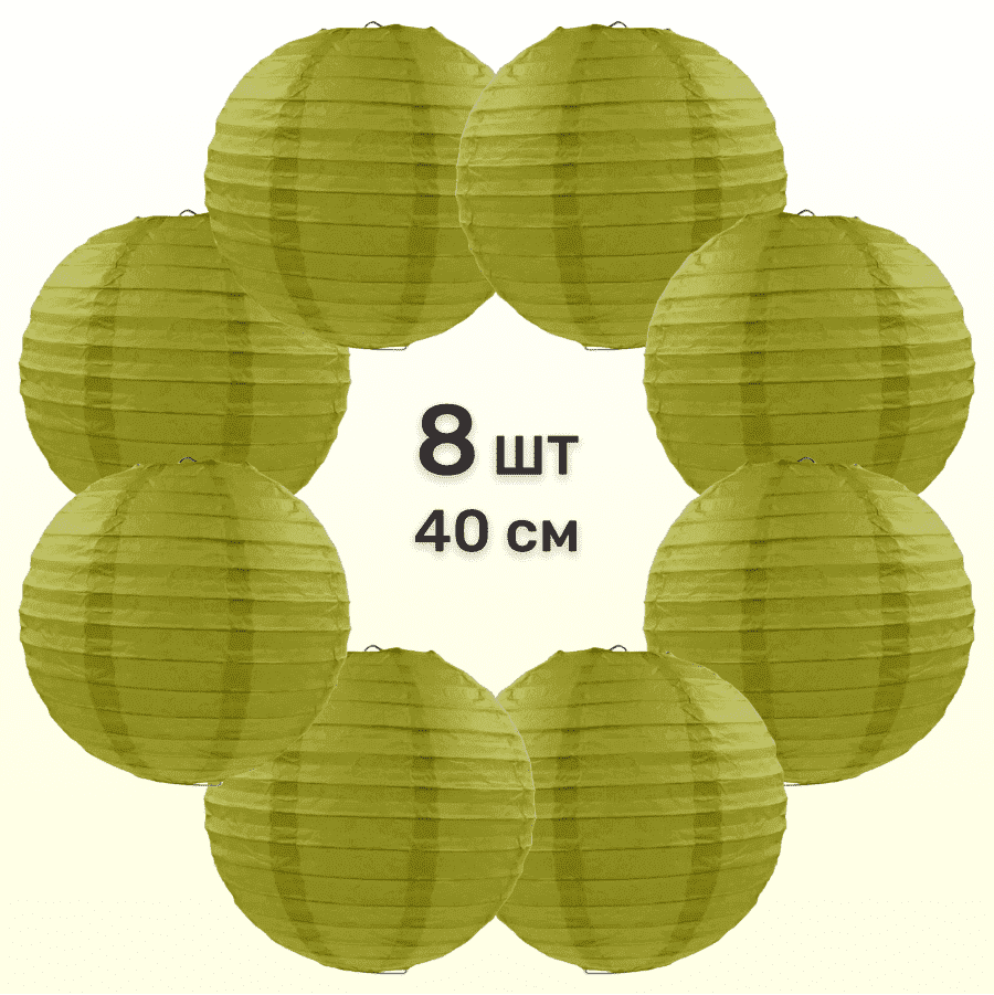 Комплект подвесные фонарики 40 см х 8 шт, фисташковый