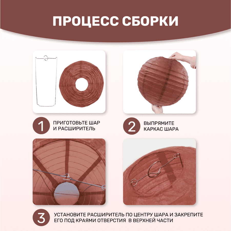 Комплект подвесные фонарики 40 см х 8 шт, коричневый