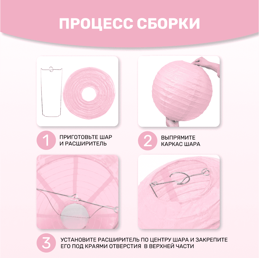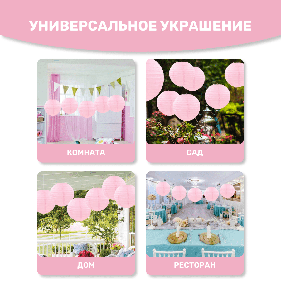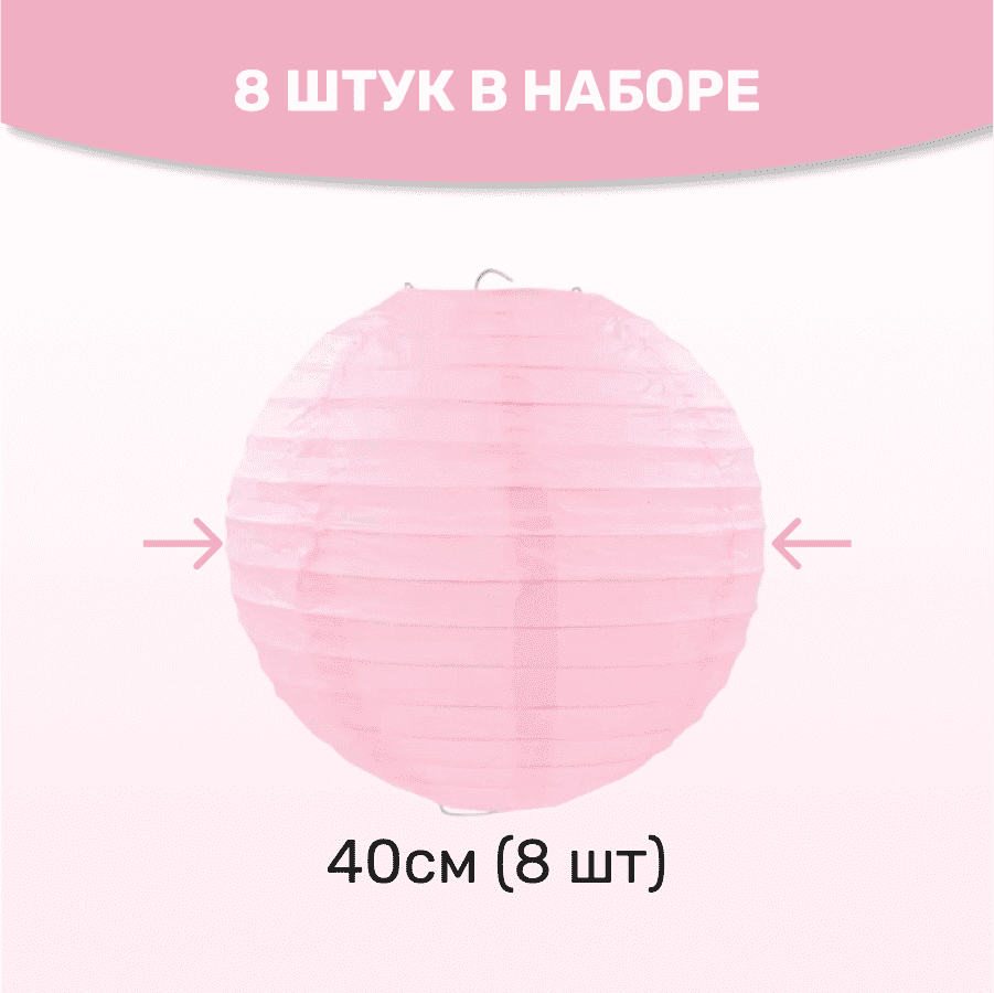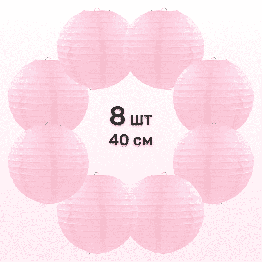 Комплект подвесные фонарики 40 см х 8 шт, розовый