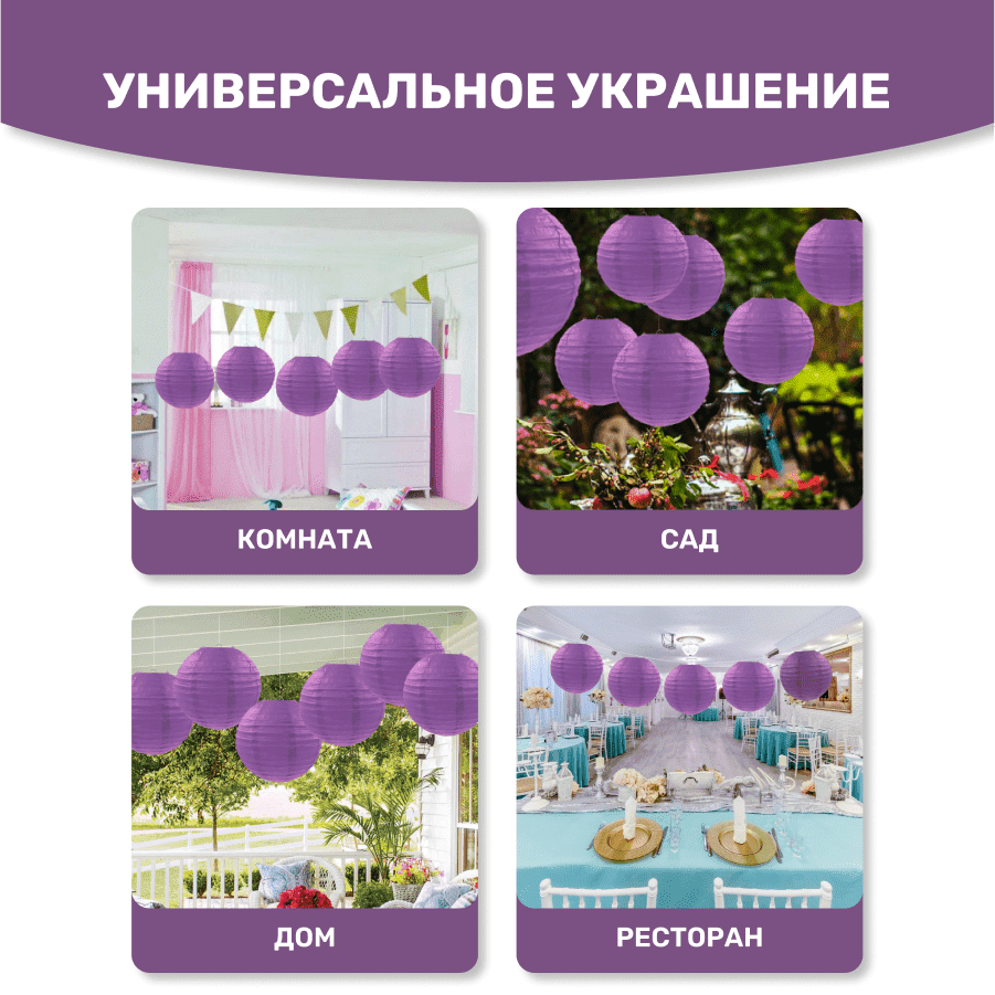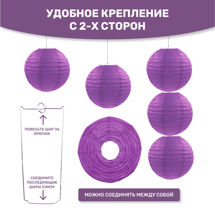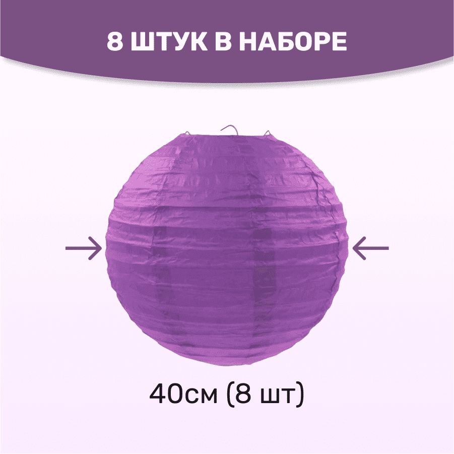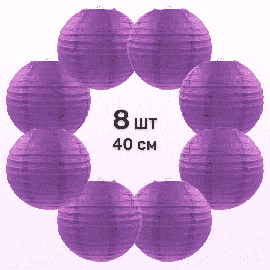Комплект подвесные фонарики 40 см х 8 шт, сиреневый