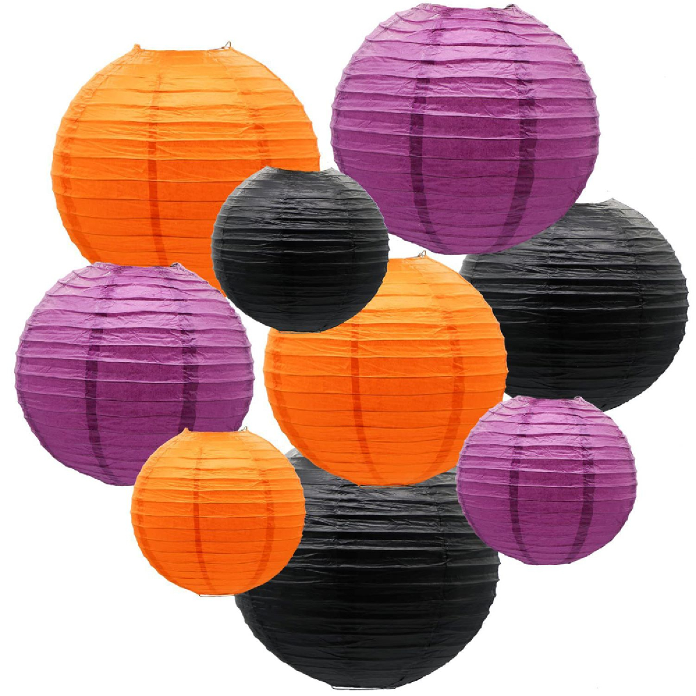 Набор подвесные фонарики 9 шт, сиреневый+черный+оранжевый