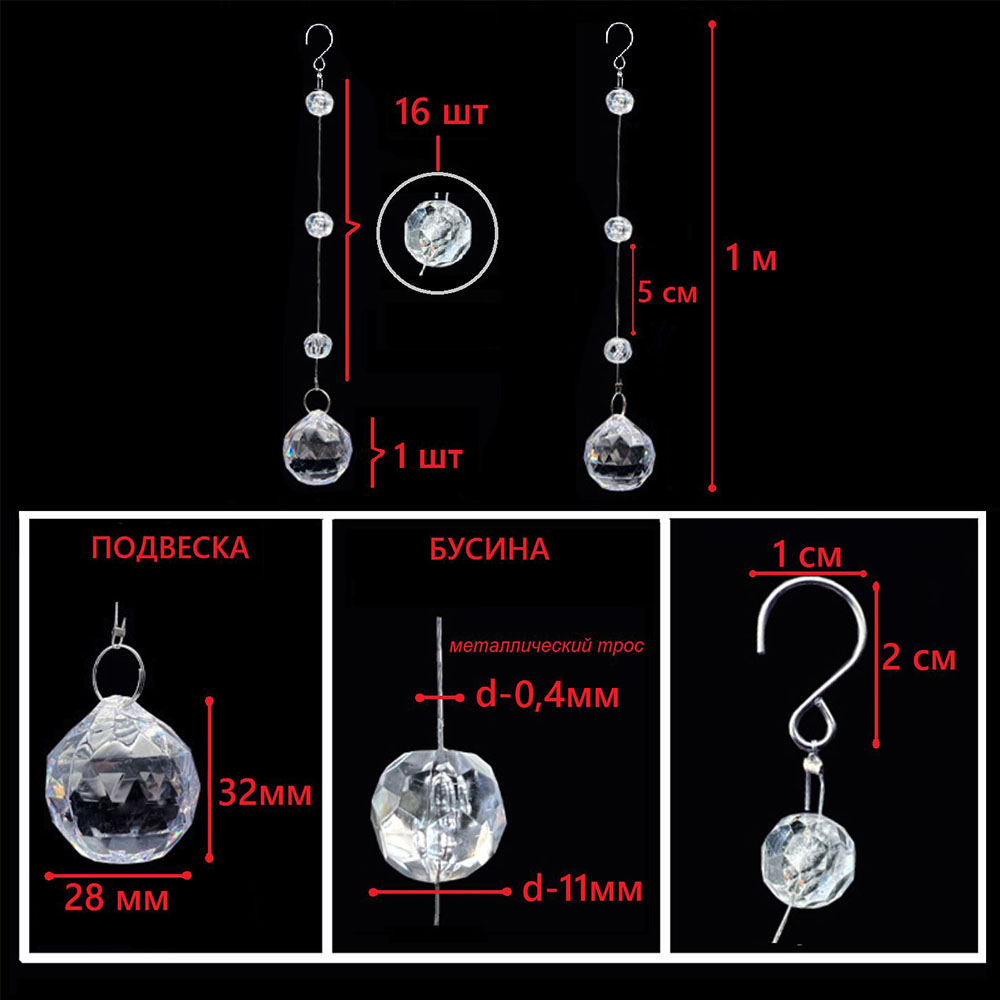 Набор струн с акриловыми бусинами №1, 10шт х 1м