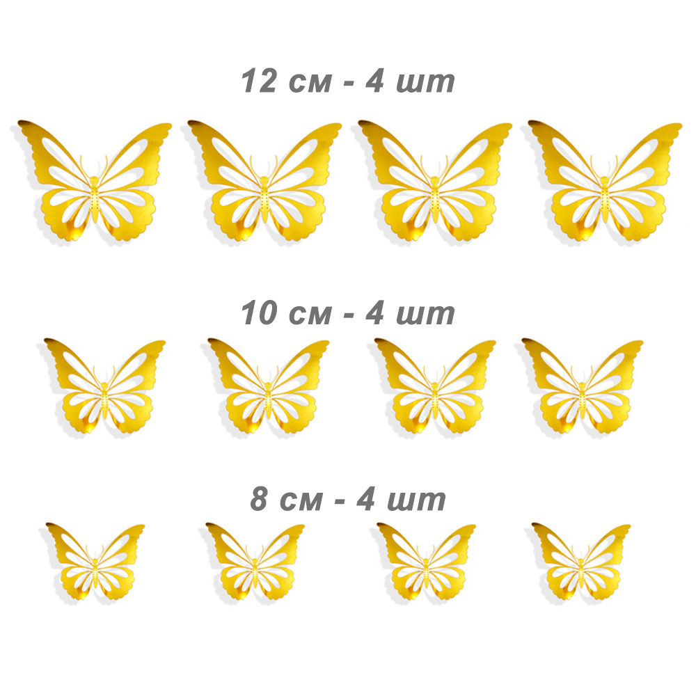 Наклейки Бабочки № 10 бумага металлик 12 шт золото