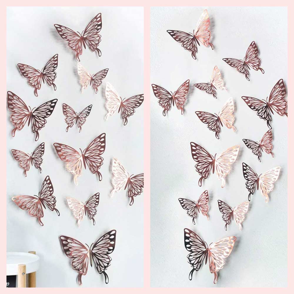 Наклейки Бабочки № 12 бумага металлик 12 шт розовое золото