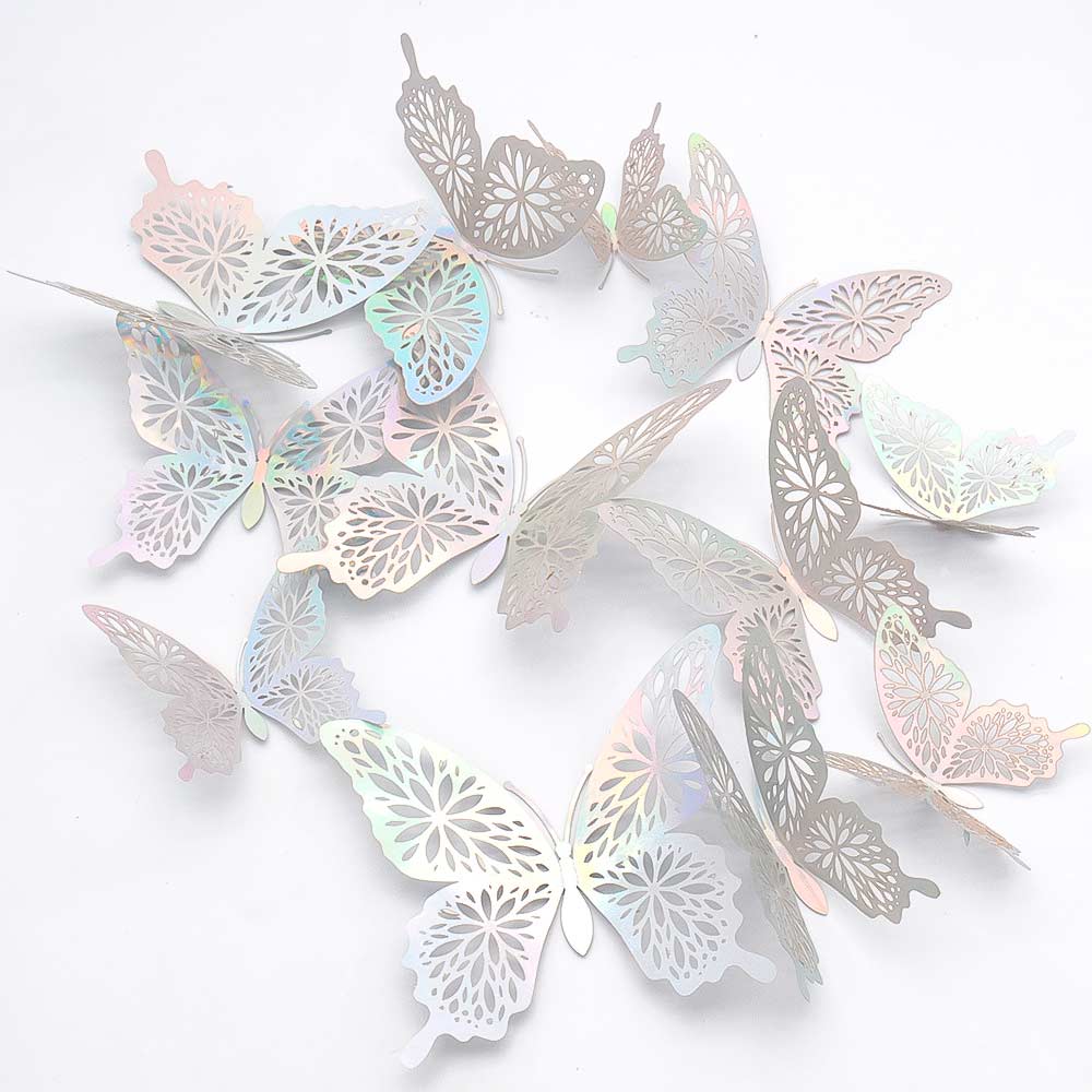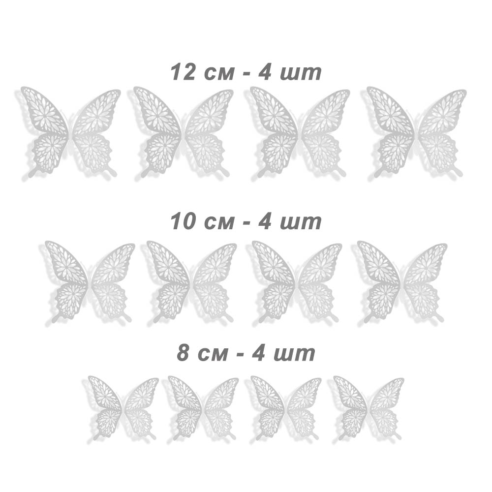Наклейки Бабочки № 15 бумага металлик 12 шт серебро