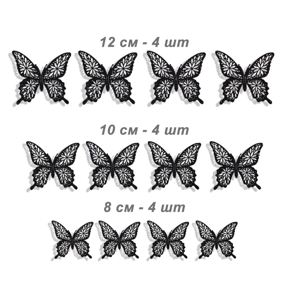 Наклейки Бабочки № 15 бумага перламутровая 12 шт черный