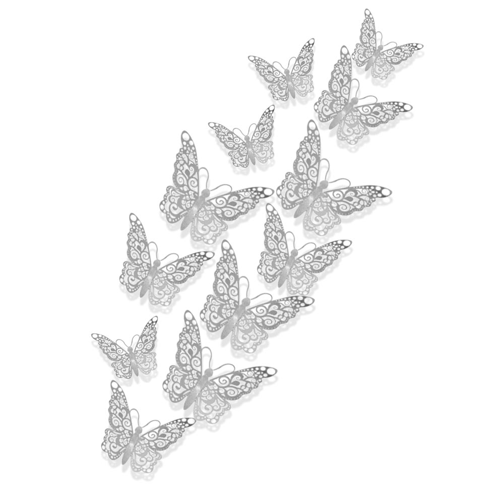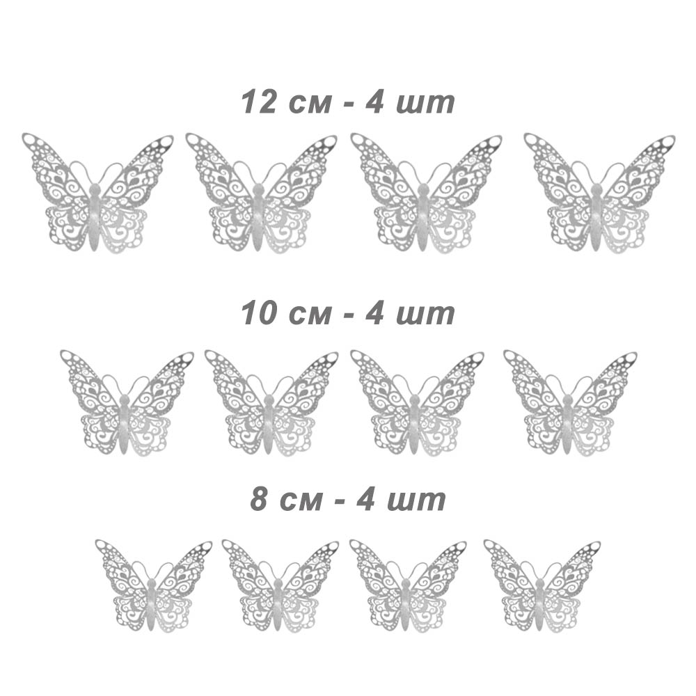 Наклейки Бабочки № 17 бумага металлик 12 шт серебро