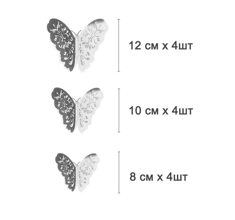 Размер: 8 см-4 шт, 10 см-4 шт, 12 см-4 шт.