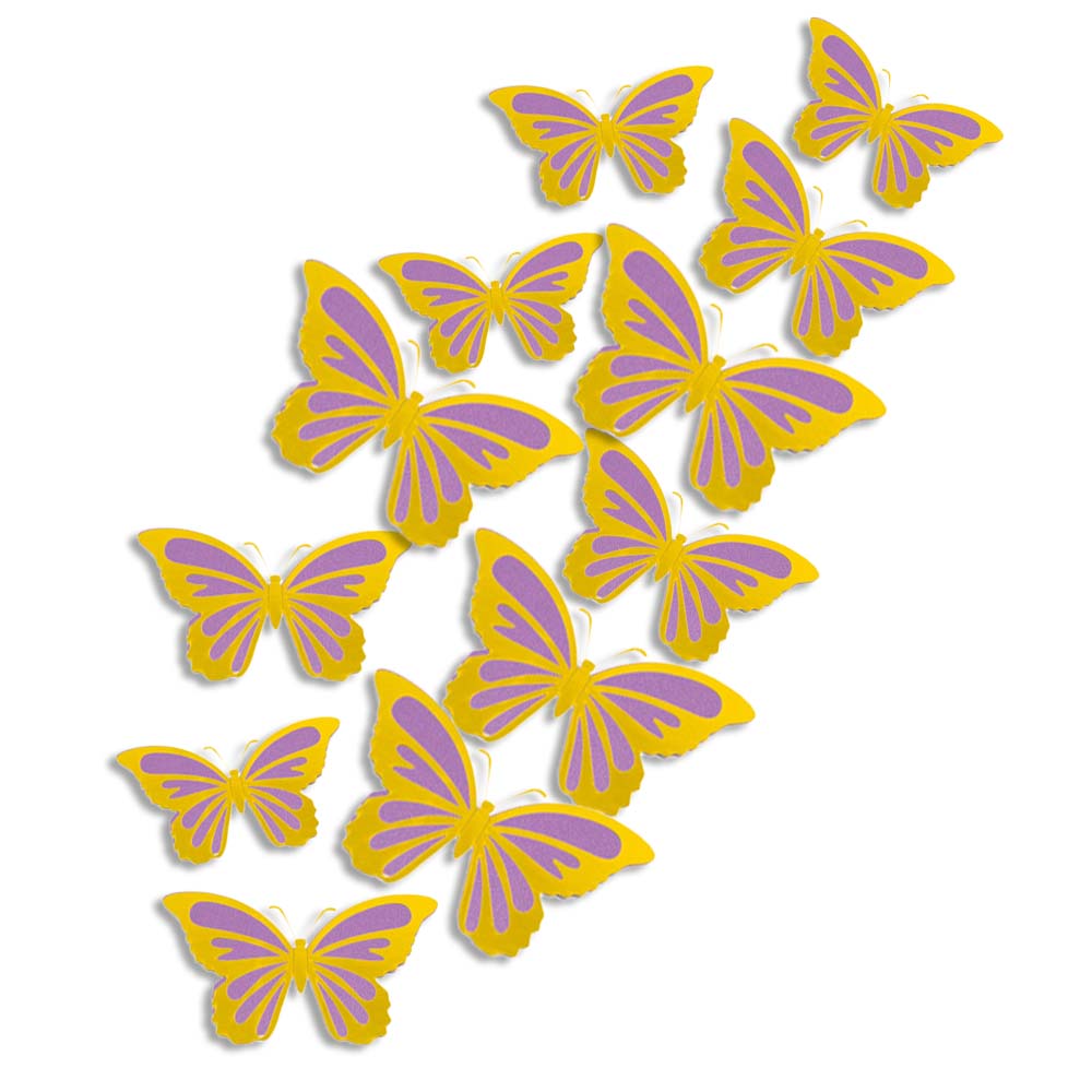 Наклейки Бабочки двойные перламутровые бумажные № 6 12 шт золото+св.сиреневый