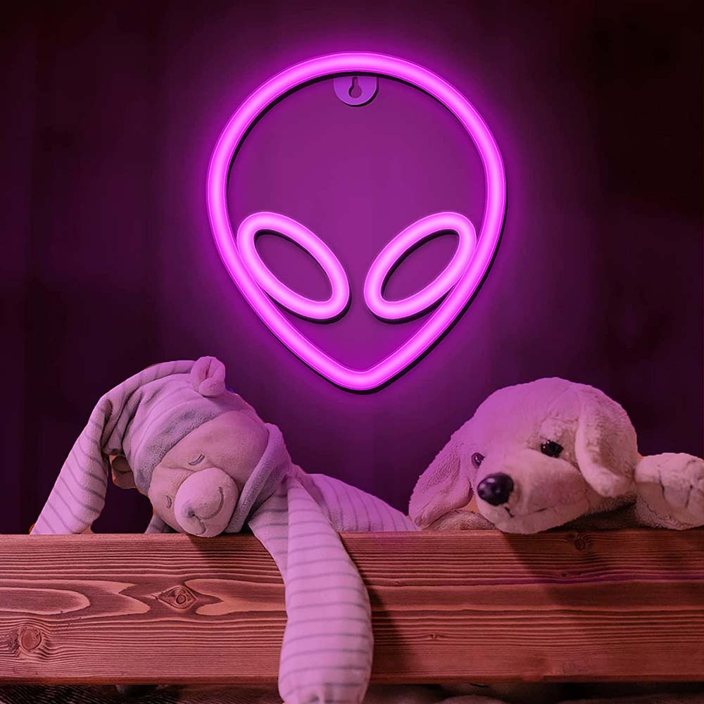 Неоновая подвеска "Инопланетянин" 22 х 20 см от батареек и USB, розовый