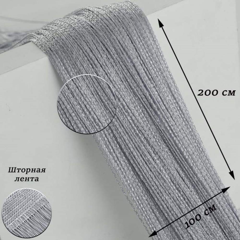 Нитяные шторы-лапша 1х2м, серебристо-серый