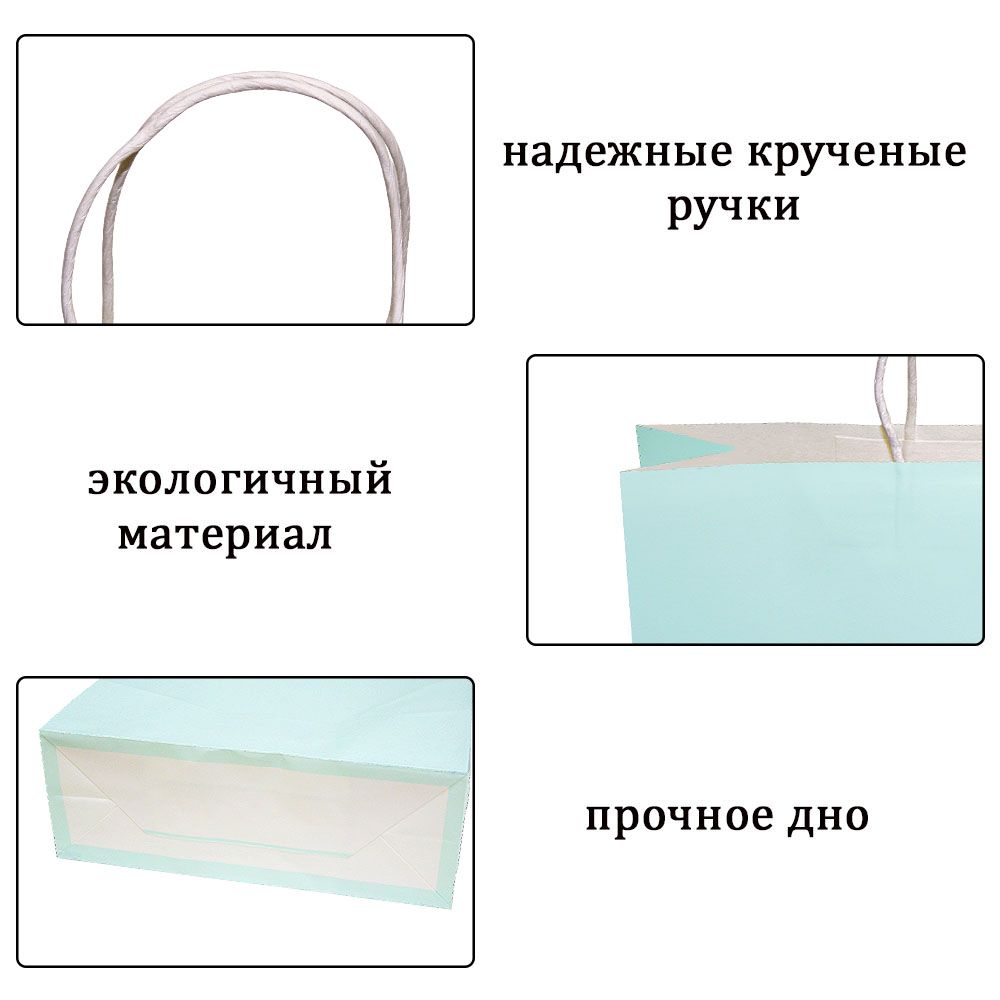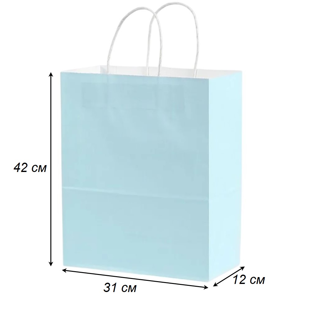 Подарочный пакет из крафтовой бумаги пастельного оттенка с белыми бумажными ручками и белой внутренней стороной.