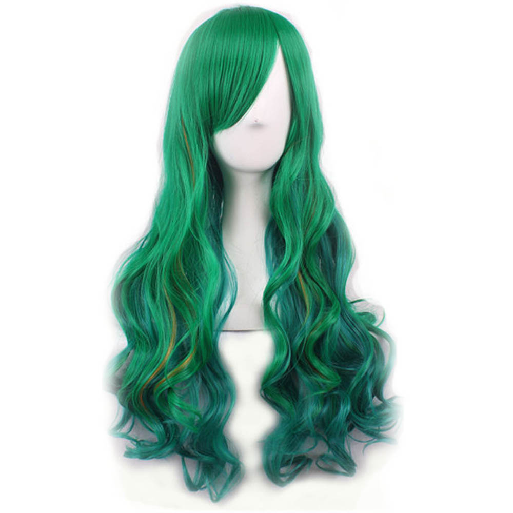 Парик радужный длинный изготовлен из современного искусственного материала.