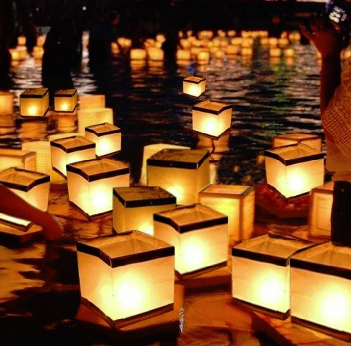 Плавающий фонарик "Куб" 15х15 см золото+белый