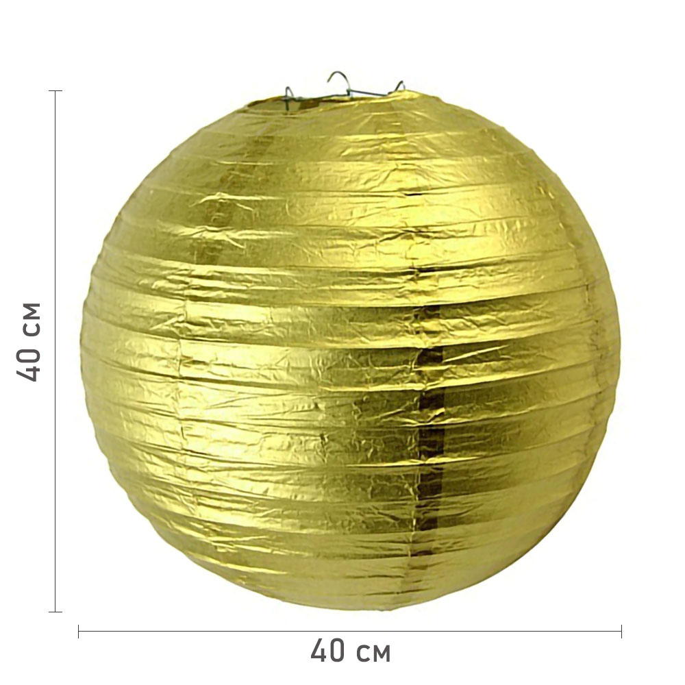 Шар — золотого цвета, прекрасно сочетается с фонариками разных размеров.