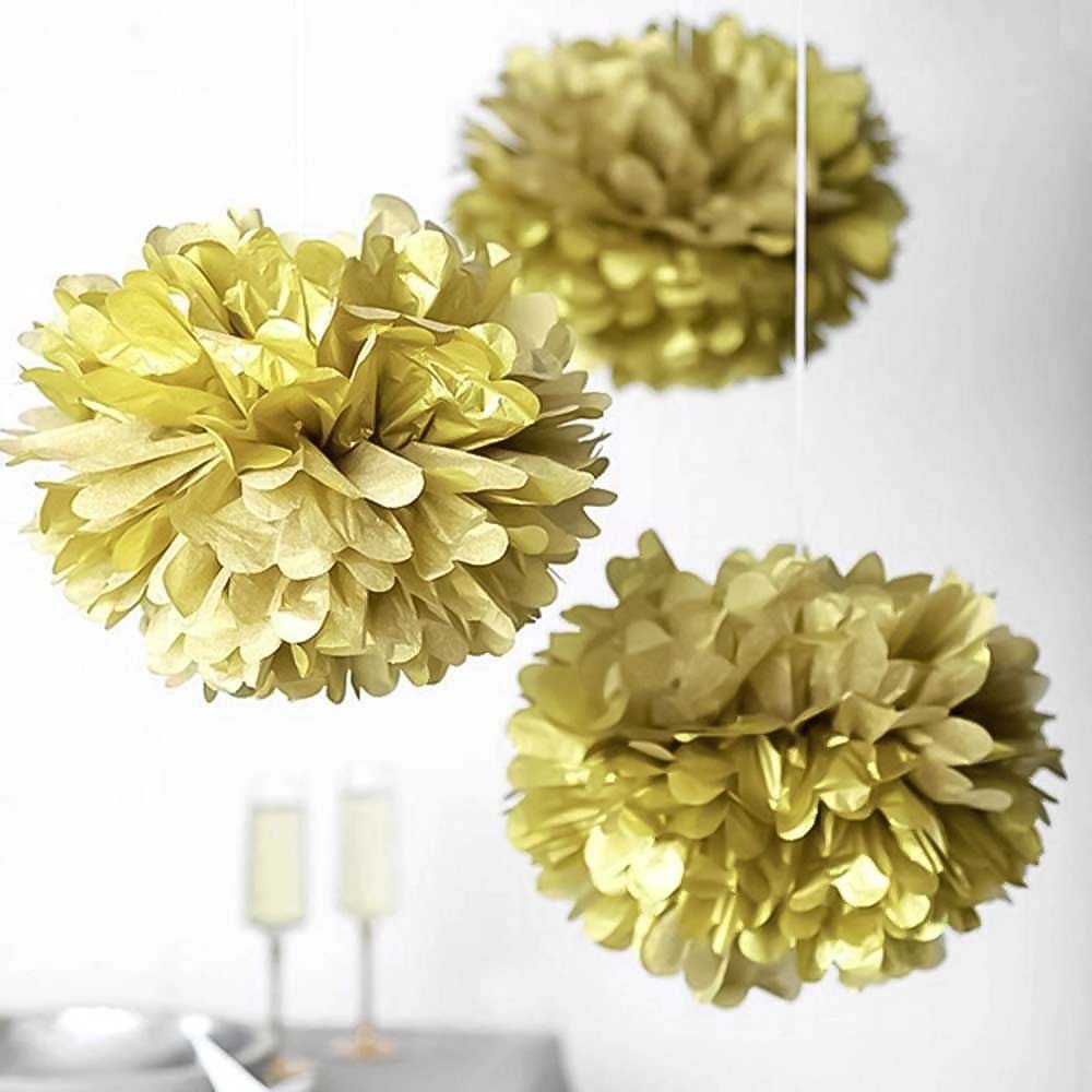 Золотой бумажный помпон диаметром 30 см — стильное и лёгкое украшение для праздников, фотозон, витрин и интерьера. Отлично подойдёт для дней рождений, свадеб, вечеринок и тематических мероприятий.