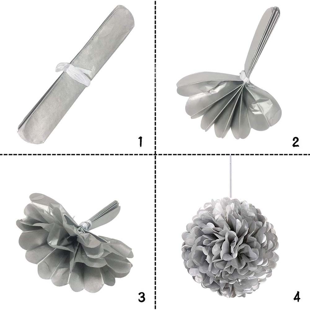 Помпон из бумаги 50 см серебро