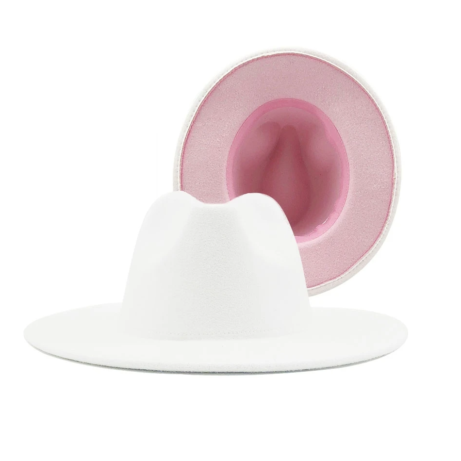 Шляпа Федора фетровая 2 цвета, белый+розовый