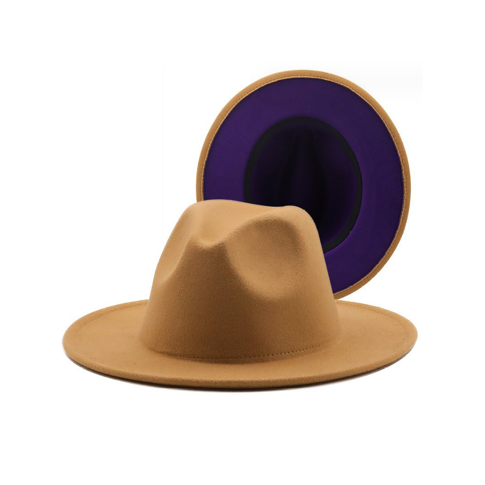 Шляпа Федора фетровая 2 цвета, песочный+фиолетовый