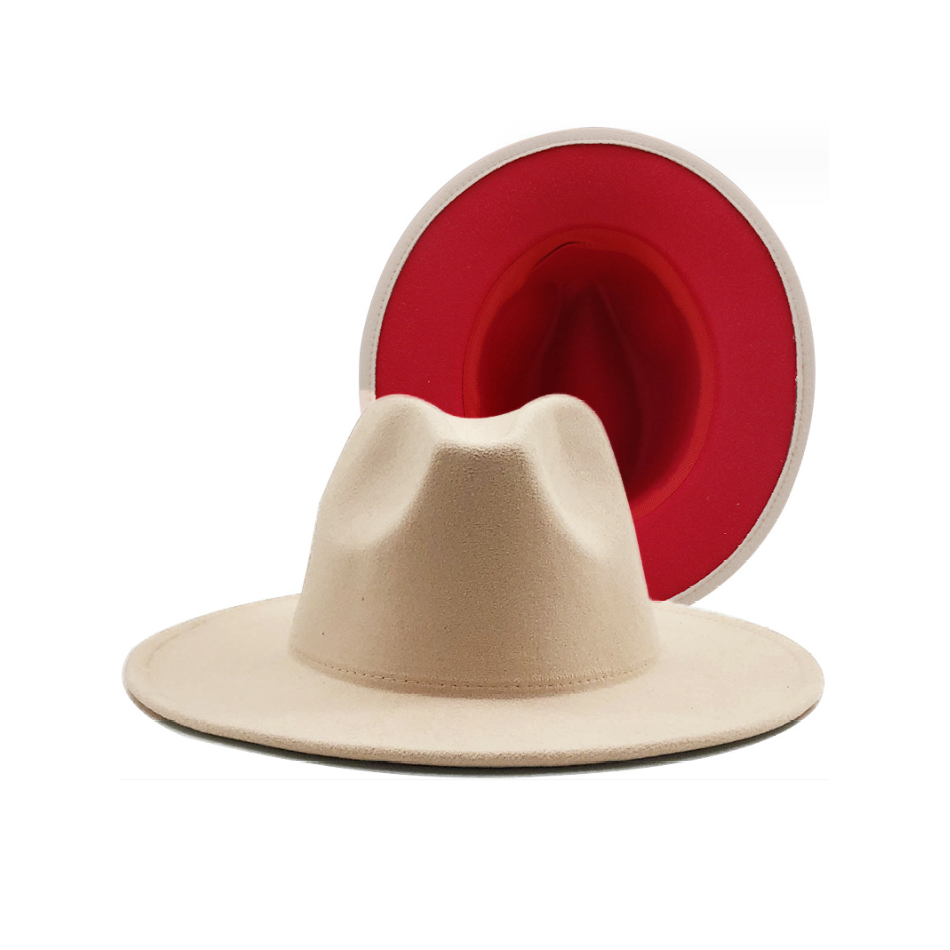 Шляпа Федора фетровая 2 цвета, бежевый+алый