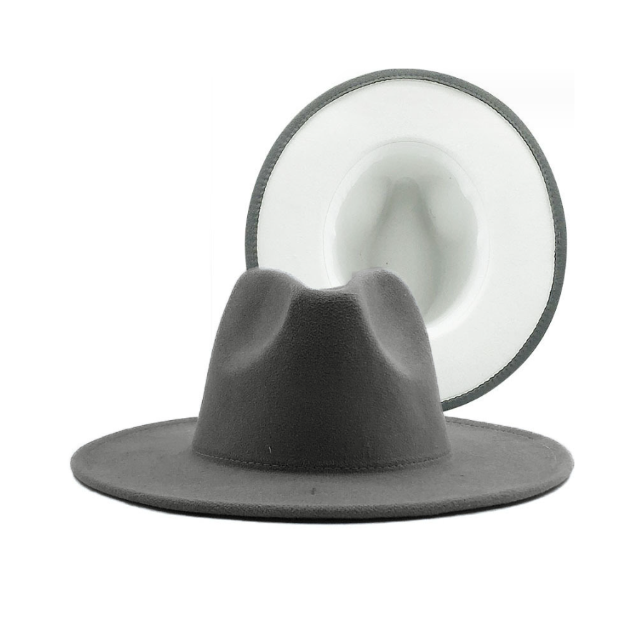Шляпа Федора фетровая 2 цвета, серый+белый