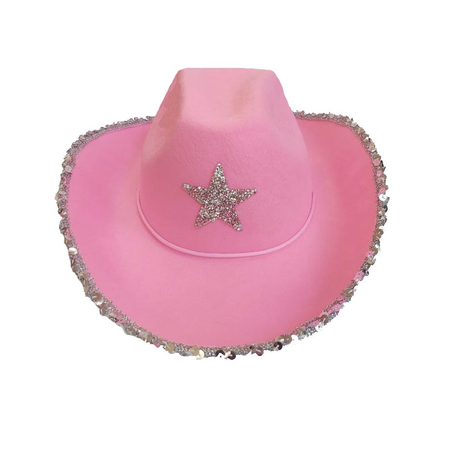 Шляпа ковбойская с блестками и звездой, розовый