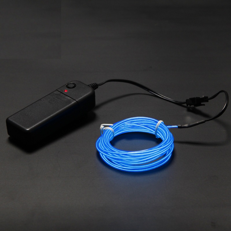 В комплекте с EL проводом, длинной 3 метра,  идет бокс с питанием от батареек, что позволяет его применять где угодно, даже на улице.  Работает от 2-х батареек 2АА (батареек в комплекте нет).