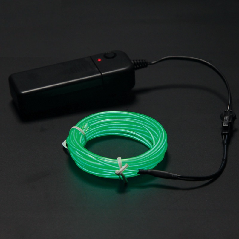 В комплекте с EL проводом, длинной 3 метра,  идет бокс с питанием от батареек, что позволяет его применять где угодно, даже на улице.  Работает от 2-х батареек 2АА (батареек в комплекте нет).