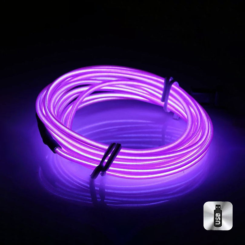 Шнур неоновый светящийся от USB 3 м, фиолетовый