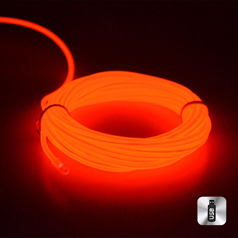 Шнур неоновый светящийся от USB 5 м, красный