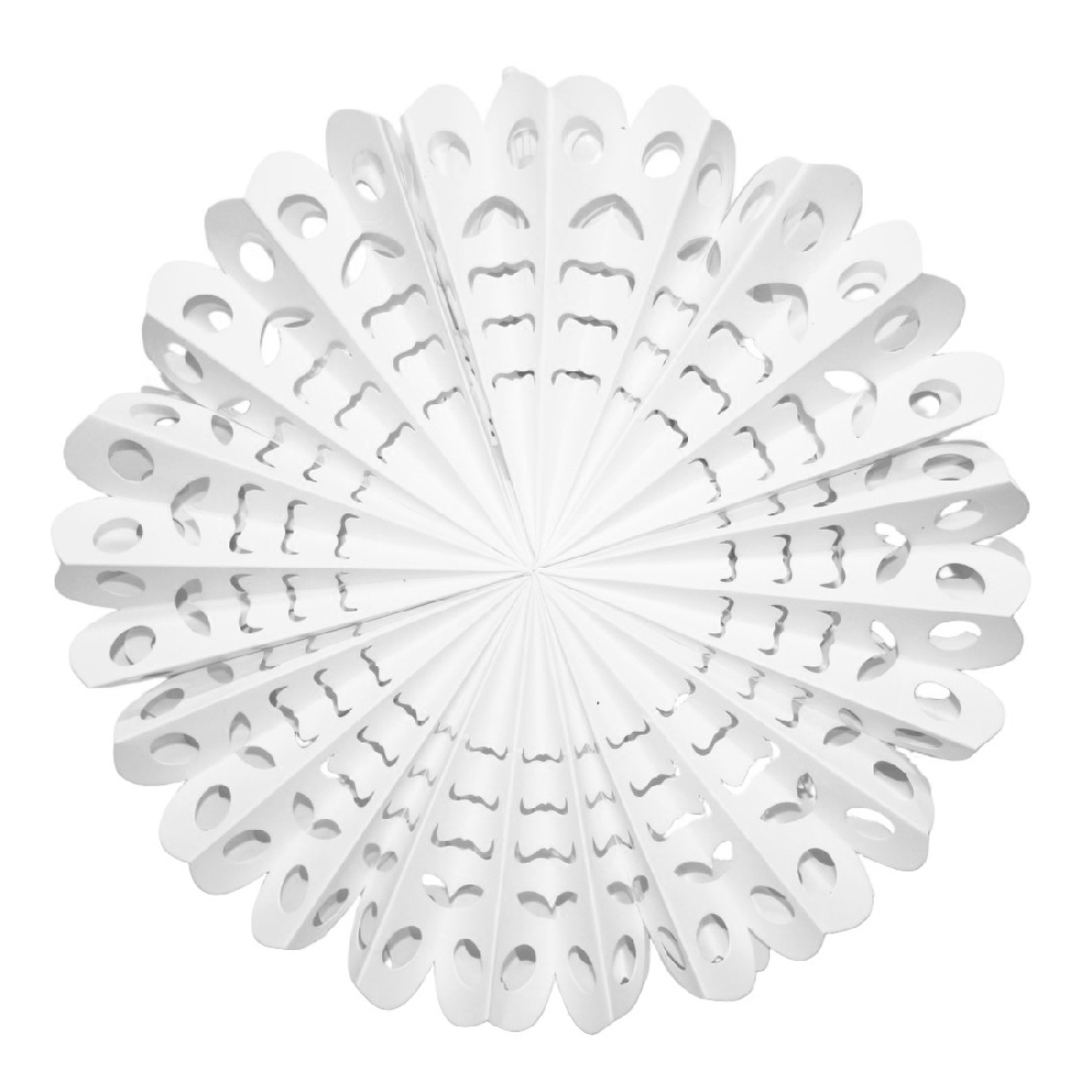 Снежинка на липучках размером 45 см, белого цвета, изготовлена из высококачественной бумаги.