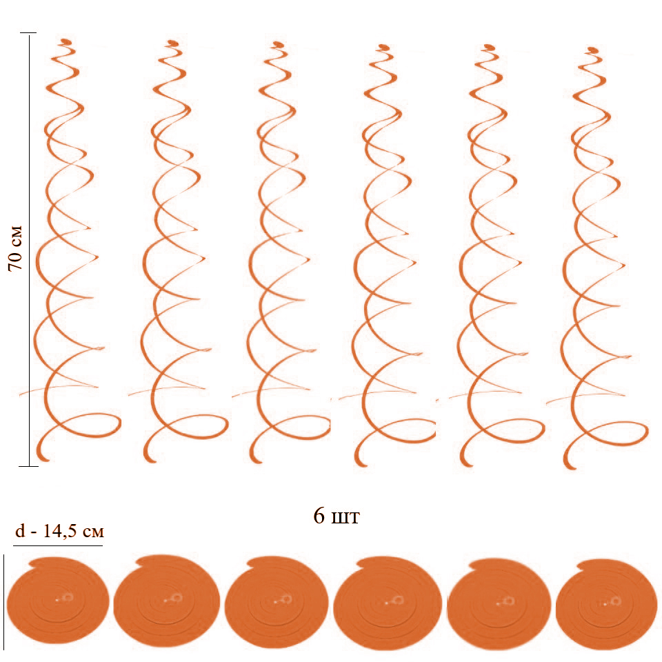 Спираль пластиковая матовая 70см 6шт, оранжевый