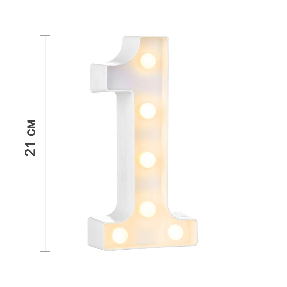 Цифра 1 светодиодная 21 см, от батареек , теплый белый