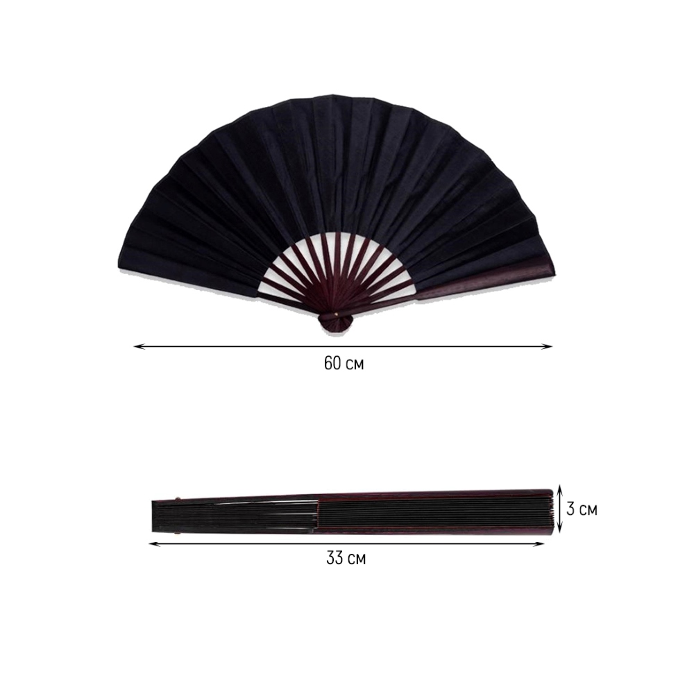 Двухсторонний складной веер для танца. Выполнен из бамбука и плотной ткани.
