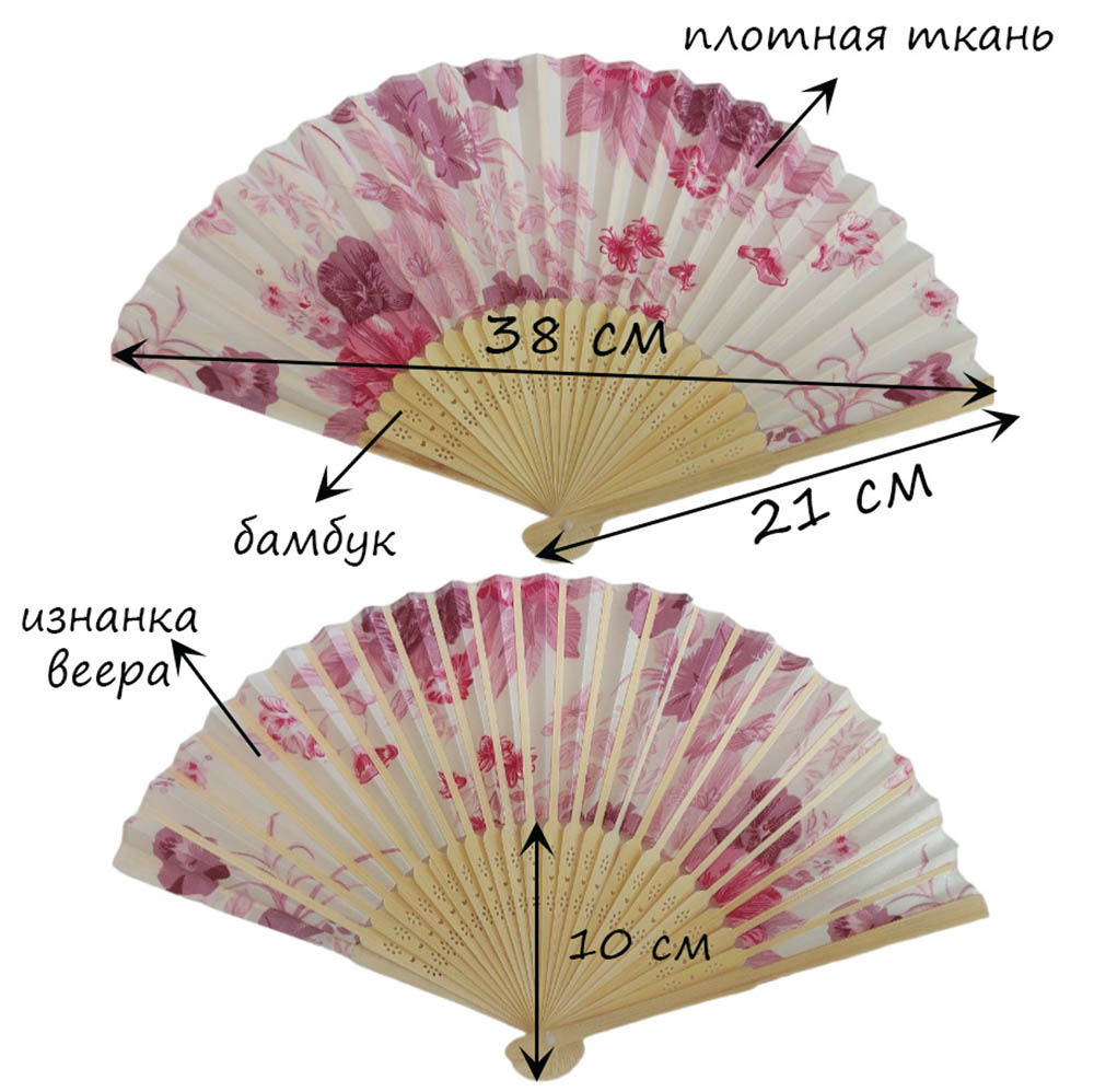 Веер с цветочным узором 38х21 см, №17