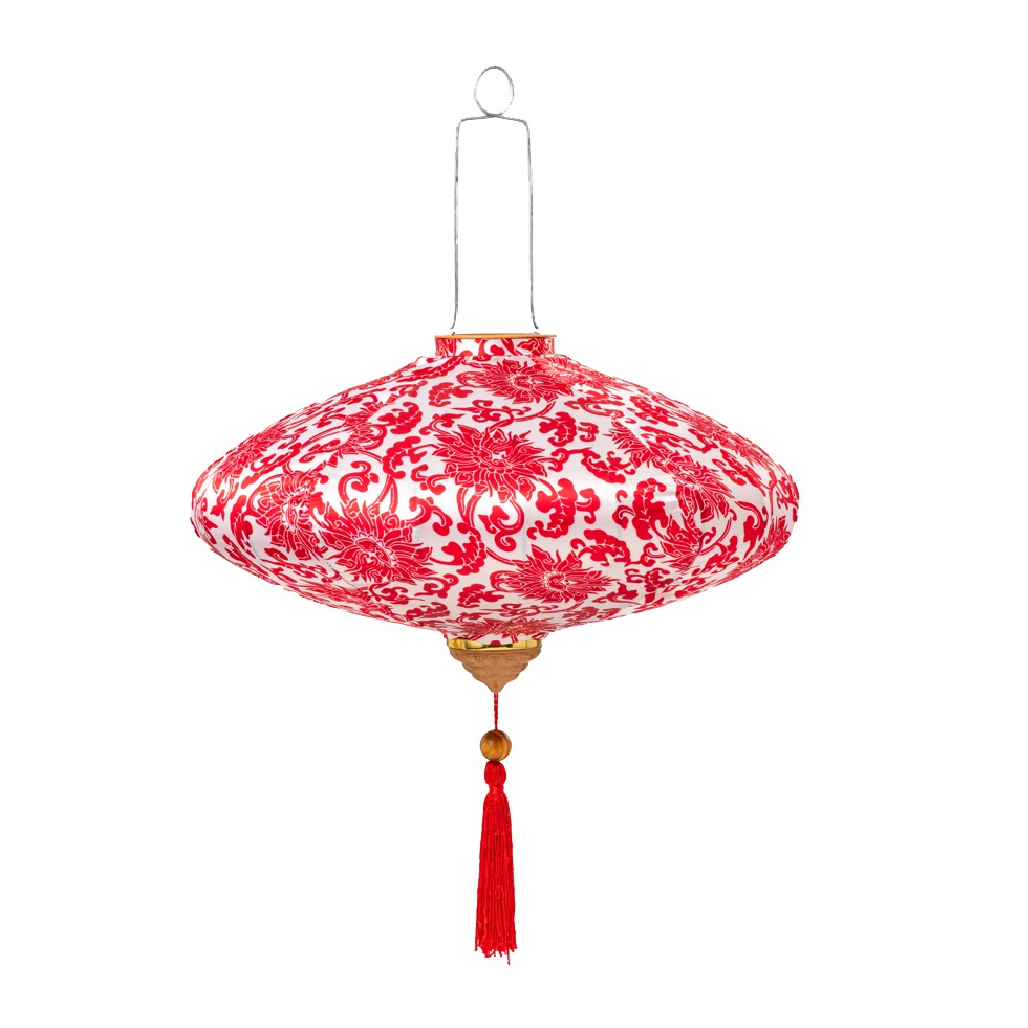 Это традиционные подвесные фонарики ручной работы, изготовленные из шелкового материала с элегантным цветочным узором, которые делают его изысканным и красивым.