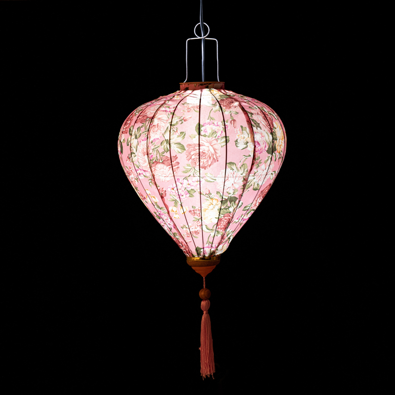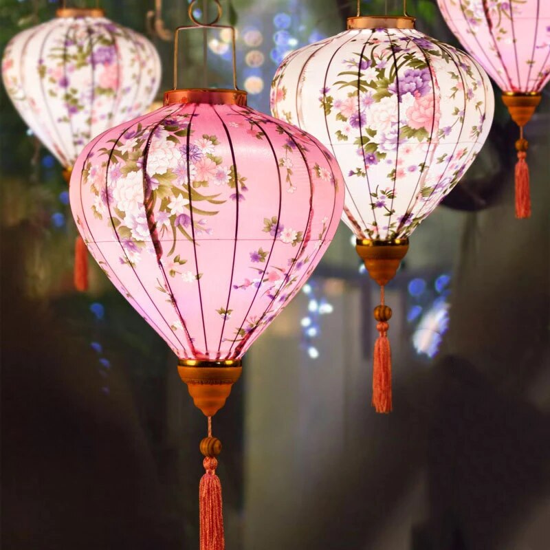 Это традиционные подвесные фонарики ручной работы, изготовленные из шелкового материала с элегантным цветочным узором, которые делают его изысканным и красивым.