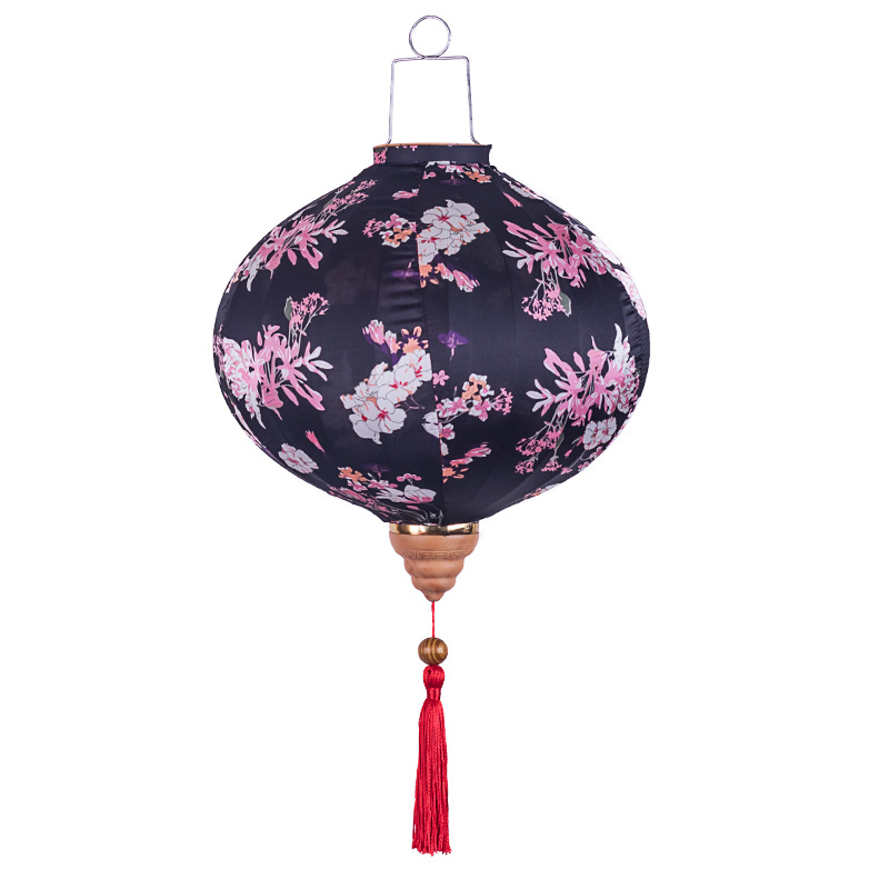 Коллекция подвесных фонарей ручной работы. Конструкция из шелкового полотна с цветочным орнаментом, металлического каркаса и подвесной системы. Модель в черной цветовой гамме.
