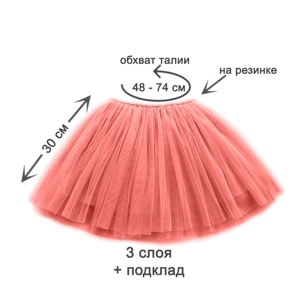 Юбка мягкая, удобная и лёгкая. Эластичный пояс обеспечивает комфортную посадку и свободу движений ребёнка, а три слоя фатина придают красивый объём и пышность.