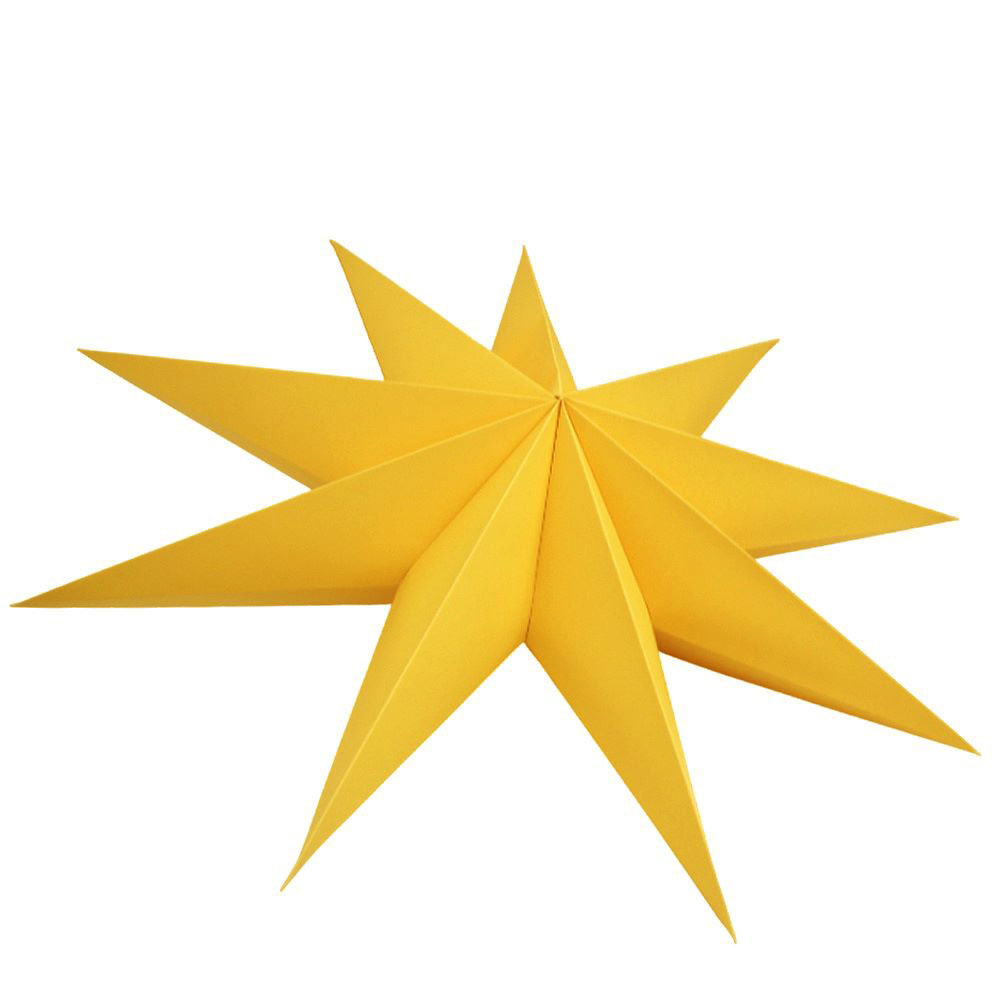 Объёмная девятиконечная звезда 45 см — декоративный элемент для интерьера и праздничного оформления. Лёгкая интерьерная звезда из картона хорошо держит форму и создаёт выразительный объём. Поставляется в сложенном виде, в комплекте шнур для фиксации объёма и подвеса.