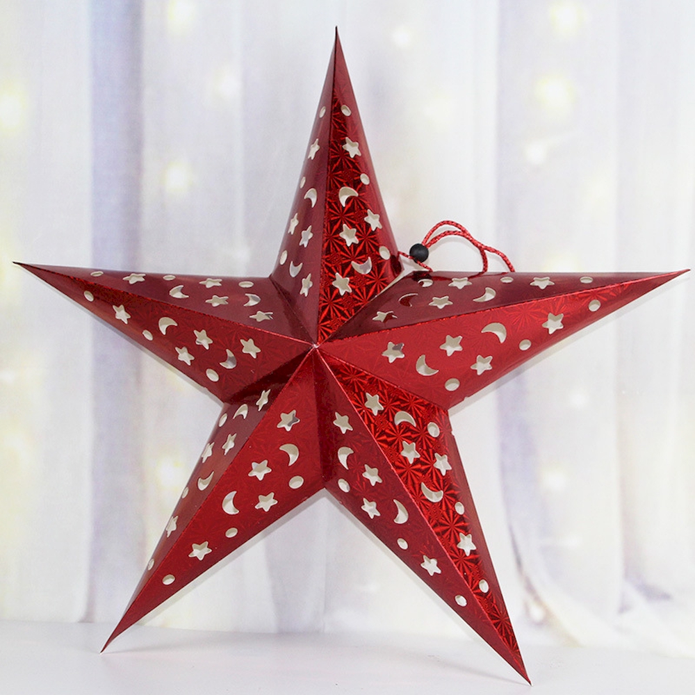 Звезда бумажная 120 см голографическая красная